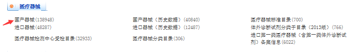 3、页面分类中有医疗器械分类其中分为国产医疗器械和进口医疗器械等,点击进入对应的分类输入信息即可查询。