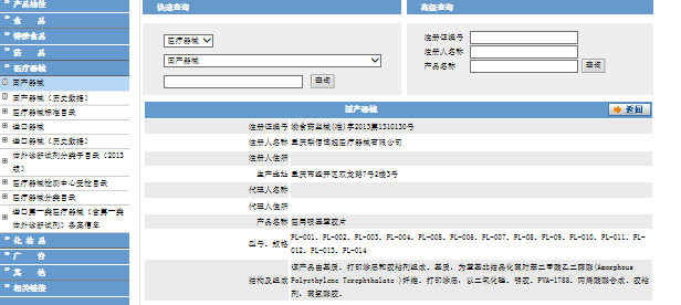 5.医疗器械注册证书由国家食品药品监督管理局统一印制,相应内容由审批注册的(食品)药品监督管理部门填写,查询结果如下: