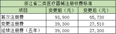 浙江省医疗器械产品注册收费标准变化情况如下: